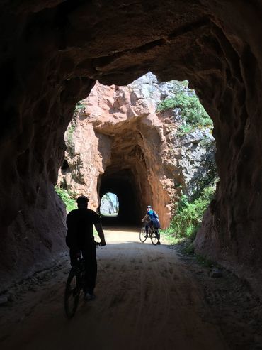Ao regressar à Ecopista, encontramos os túneis, são uma das grandes surpresas deste percurso, testemunhos históricos da antiga linha do Caminho de Ferro Mineiro do Lena, estes túneis, escavados na rocha calcária, são uma característica marcante deste trajeto.